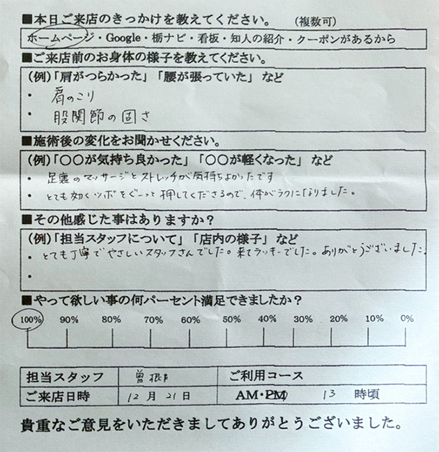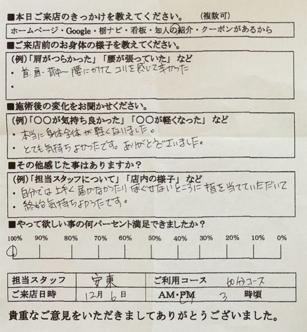 お客様の声@宇都宮市の整体サロンほぐしte18