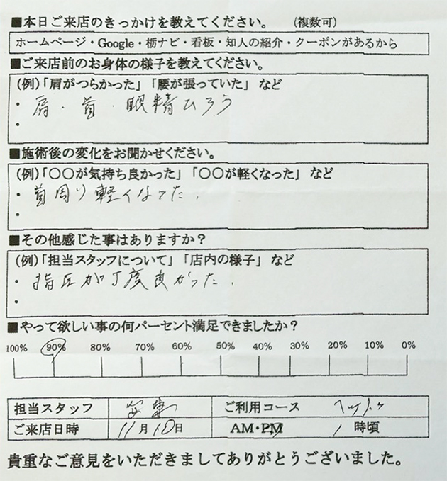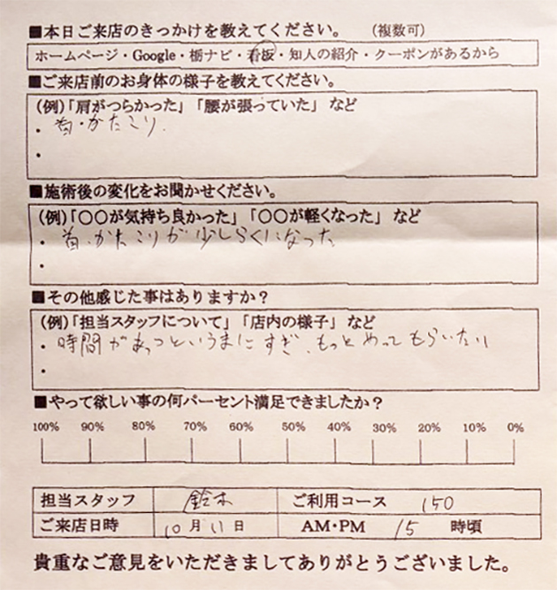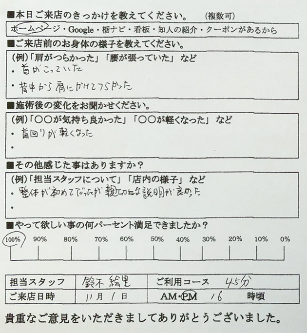 お客様の声@宇都宮市の整体サロンほぐしte18
